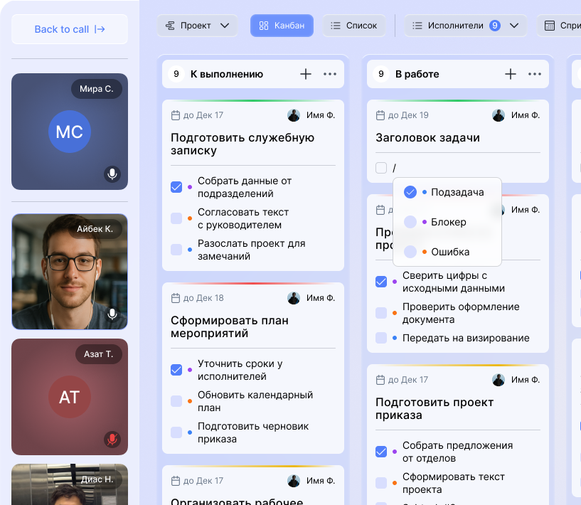 Без ручных переносов, без дублирования - всё, что прозвучало на созвоне, автоматически появляется там, где команда реально работает