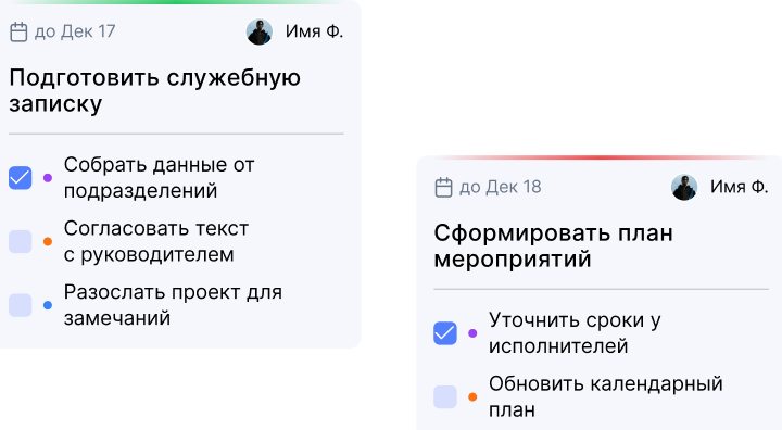 Поручения реже теряются и чаще доводятся до конца, потому что за ними постоянно ведётся отслеживание